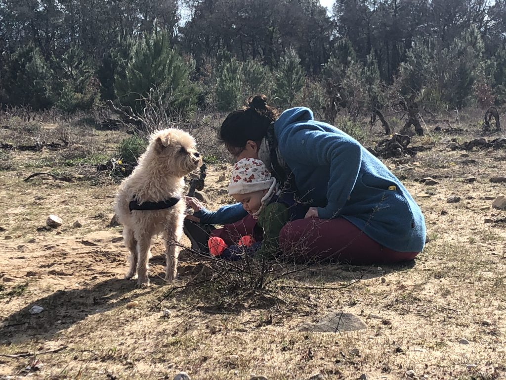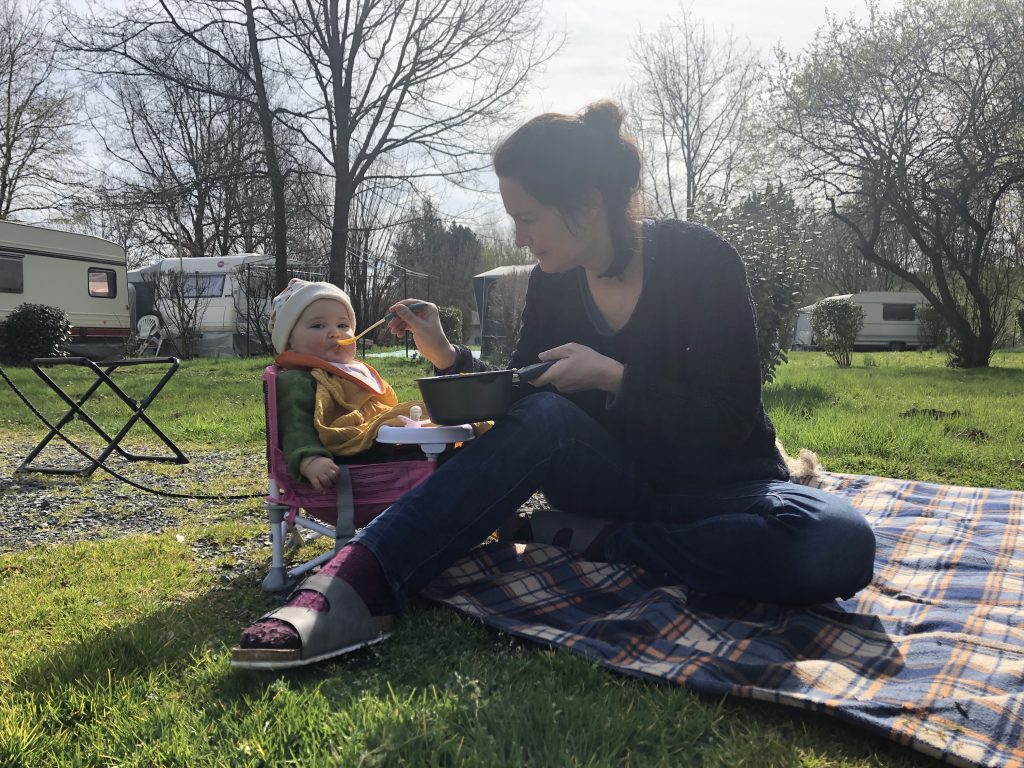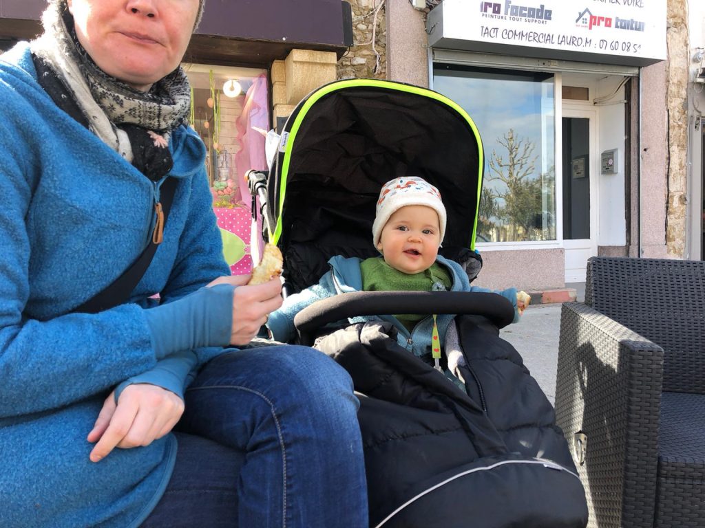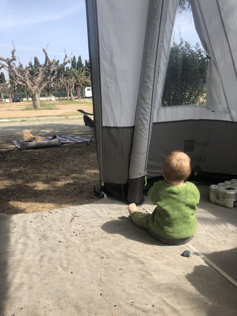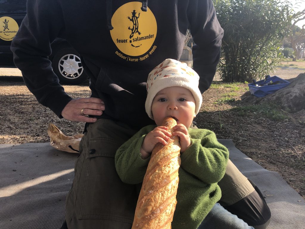…haben wir einen Campingplatz gefunden. Mitten im Wald. Umringt von Kiefern, Steinen und Eichen. Hier bleiben wir mal drei Nächte. Fast allein. Nur ein Esslinger Rentnerpärchen, ein paar Plätze weiter, geniesst mit uns das Idyll. Der längere Aufenthalt hat uns dazu motiviert unsere Einraumwohnung um ein zweites Vorzeltzimmer zu erweitern. So konnten wir uns, während Lotte bereits schlief, mal in Ruhe ein lecker Französisches Vesper bei Feuerhandschein gönnen. Was noch so passiert ist? Markt in Bellène, erstes Brioche für Lotte, Sandbaden für Max und viele Boden-und Naturstudien. Morgen geht’s weiter Richtung Spanien. Hasta pronto!