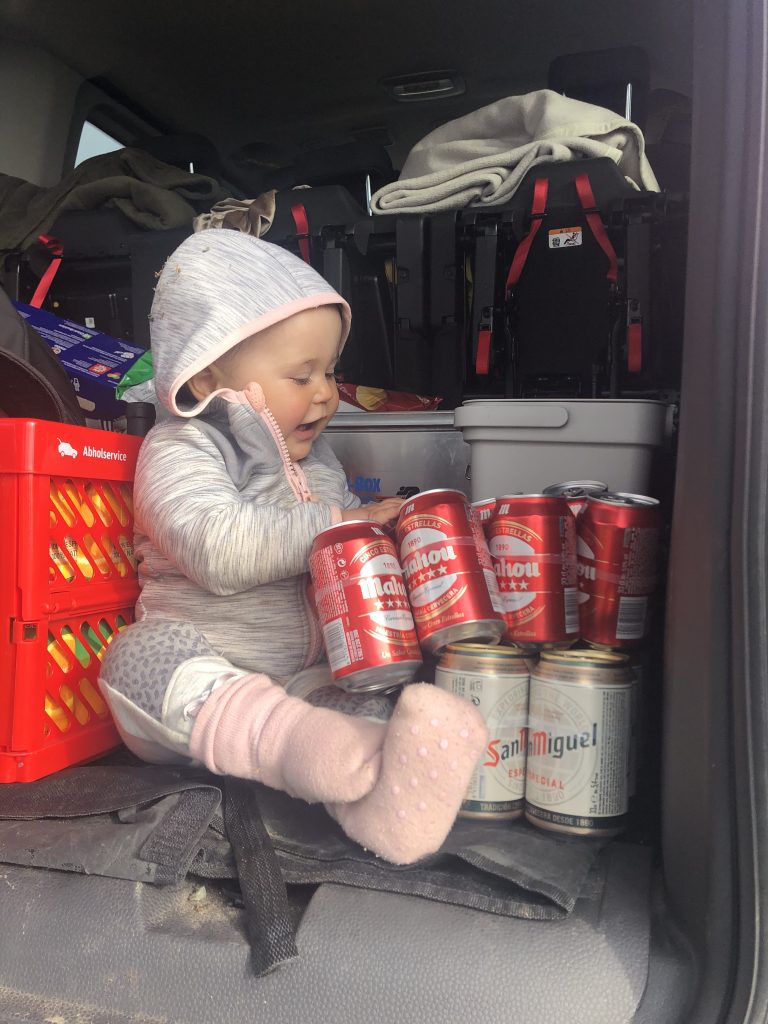 In den meisten Fällen, ohne dass man es wirklich mitbekommt, dehnen sich unsere Ausflüge trotzdem gen Nachmittag. Gut und gerne kann es da schonmal 15-16 Uhr werden, bis wir zurück am Camper sind. Dort verbringen wir die Zeit, zum Glück meist in der Sonne, vor dem Camper, spielen mit Lottchen, jagen Max noch über die leeren Stellplätze, gönnen uns ein Bierchen und ein Glas Wein und bereiten langsam das Abendessen vor. Bisher können wir uns kulinarisch nicht beschweren. Auch heute – ich bin dran mit Einkauf – werden wir uns was gönnen. Geplant sind Muscheln und Scampi vom Grill. Drückt die Daumen, dass kein Hamster vor mir da war und die Frischetheke geplündert hat. Ich nehme jetzt die Bestellungen der Nachbarn auf (so wird das hier im Wechsel gehandhabt) und mach mich auf das kleine Abenteuer „Einkauf“.