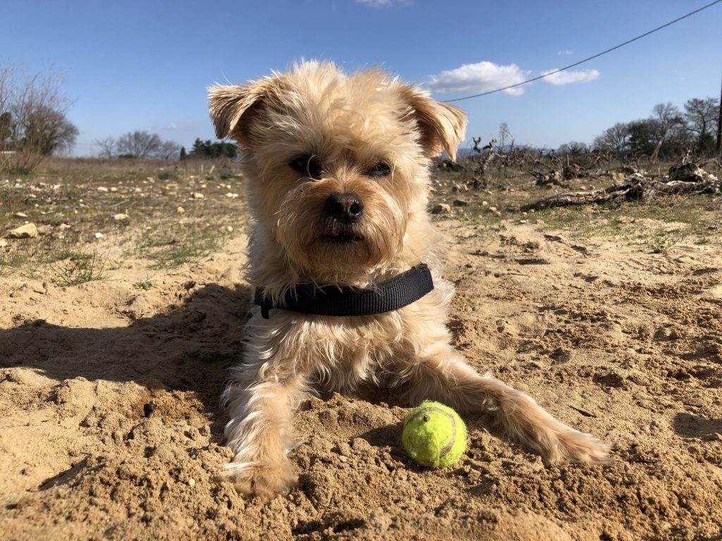 Kilometer 784 von Zuhaus. Nähe von Bellène in der Provence. Erst Regen, dann Sonnenschein mit ordentlich Wind bei 12 Grad. Neueste Lottefertigkeit: von allein in den Kniesitz. (geschrieben von Annepu)